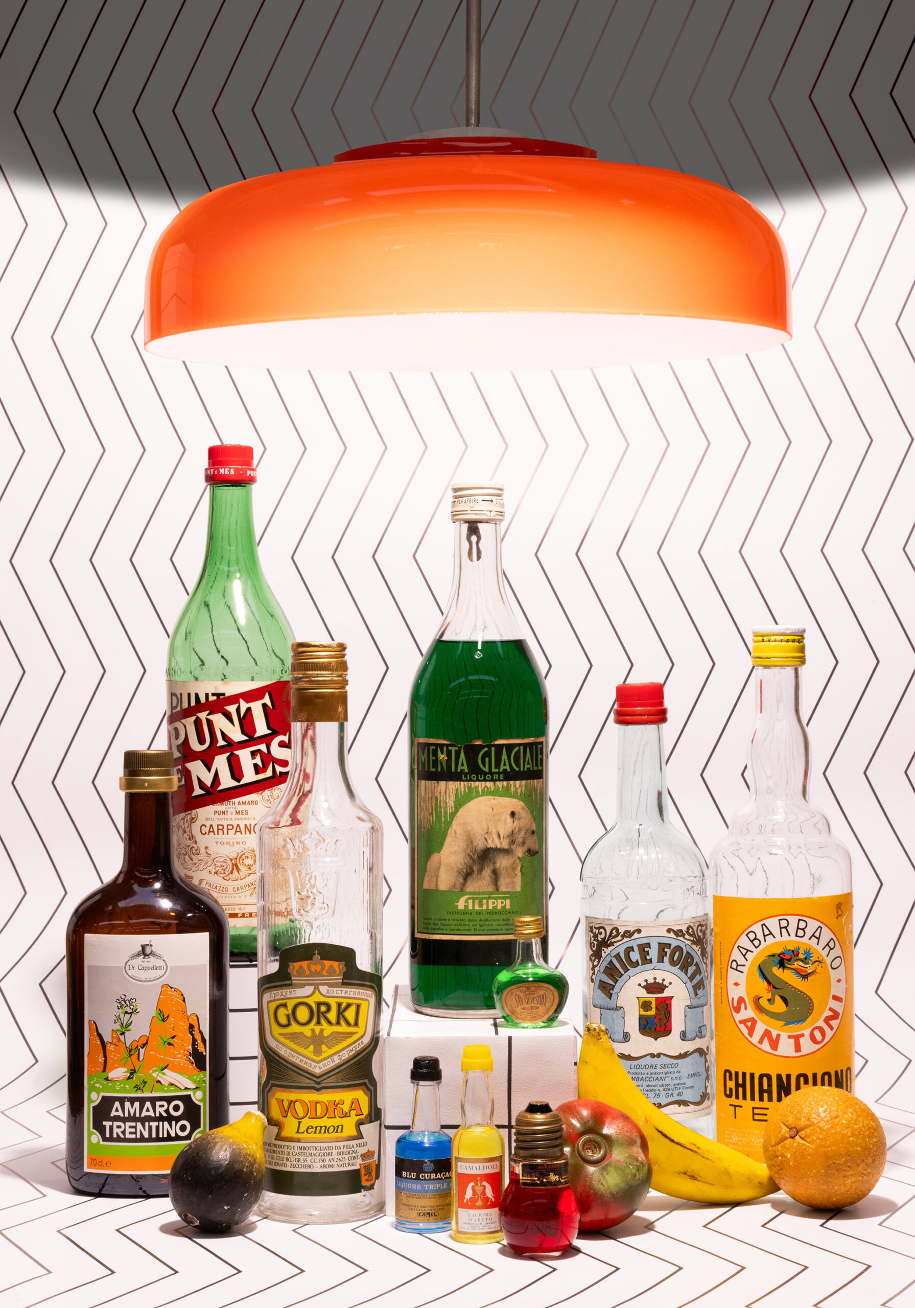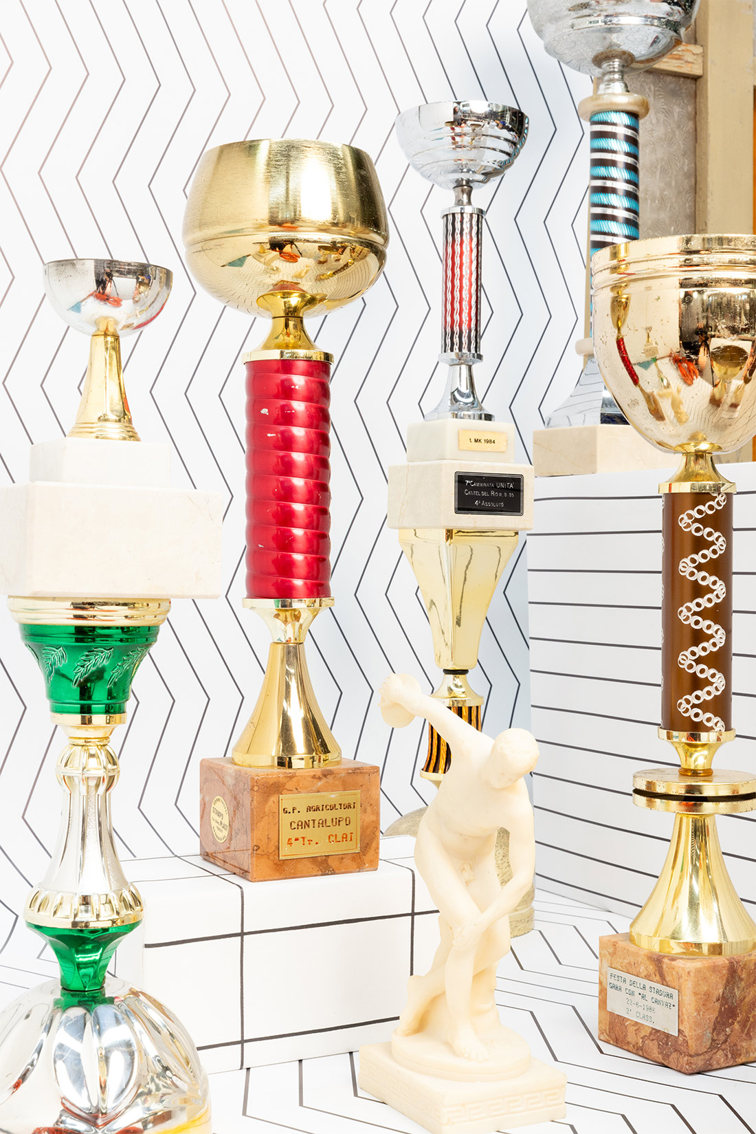 Our sports themed research contains a number of sub-genres and tangents within! We have spent the past few months acquiring sports rackets, balls, boxing gloves and other equipment, but also trophies and spirit bottles like the ones that were consumed and displayed in Bocciofile all around Italy. The only difference is that ours have been emptied out and thoroughly cleaned, while preserving the colorful vintage labels.